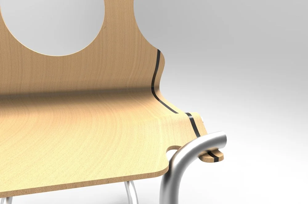 The name of the chair topography comes from the way the metal and the wood combine and as your eye moves over the chair. If you follow one line of metal it will lead you into a line made of wood and vice versa.